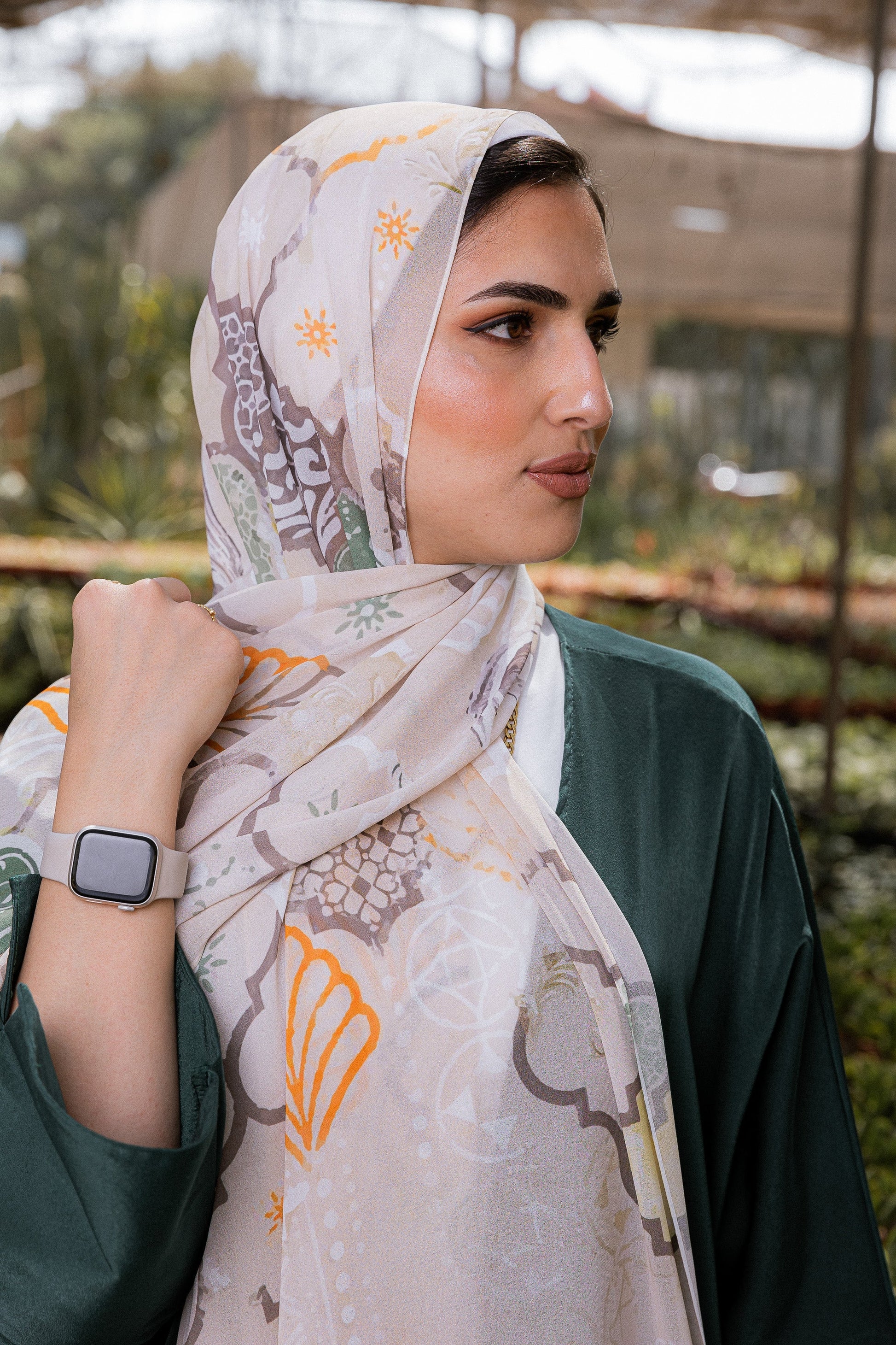 نسيج من الزخارف الهندسية المعقدة الممزوجة بتفاصيل زهرية دقيقة، يجسد التراث الشرقي بأسلوب فني حديث.