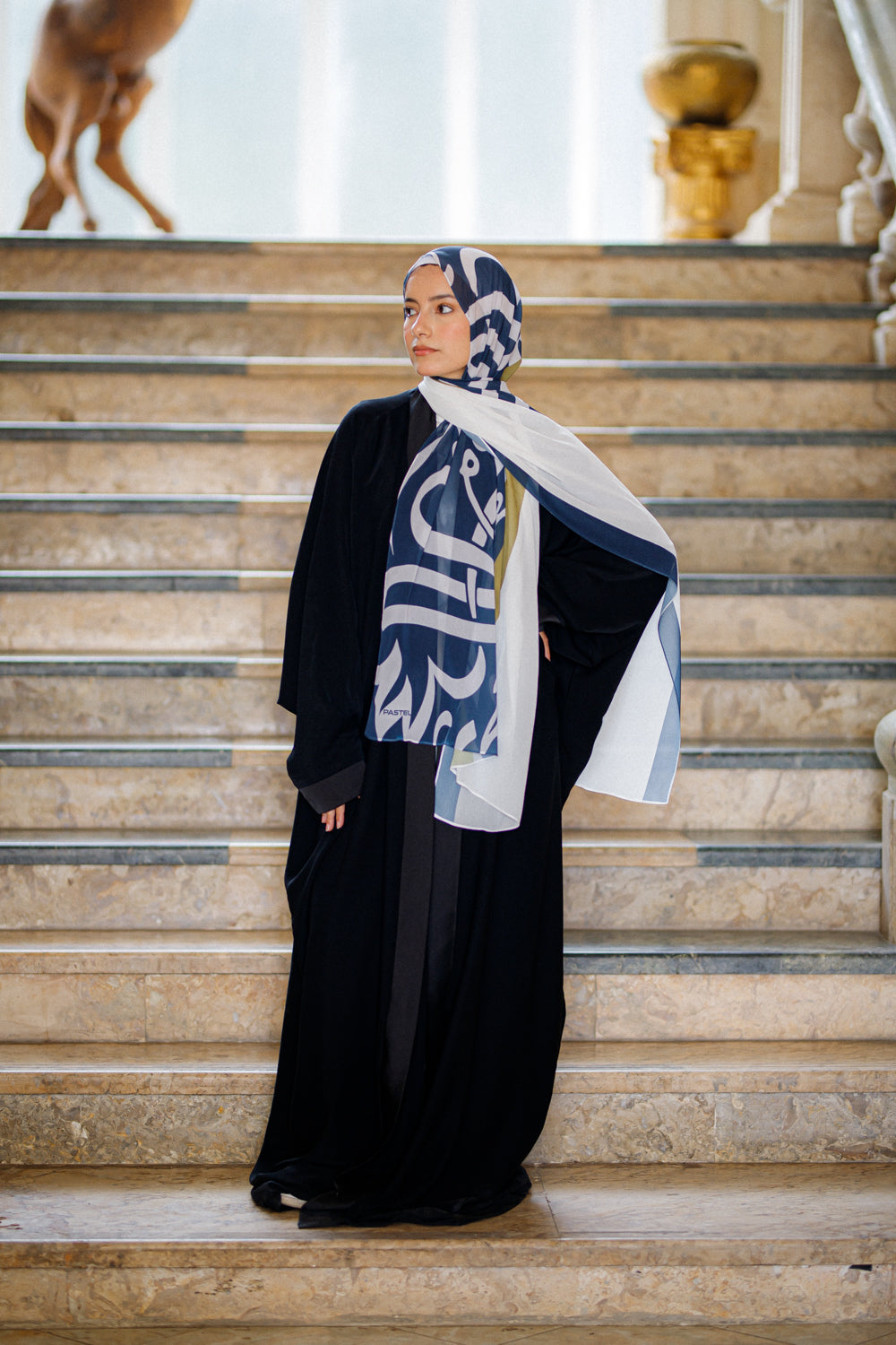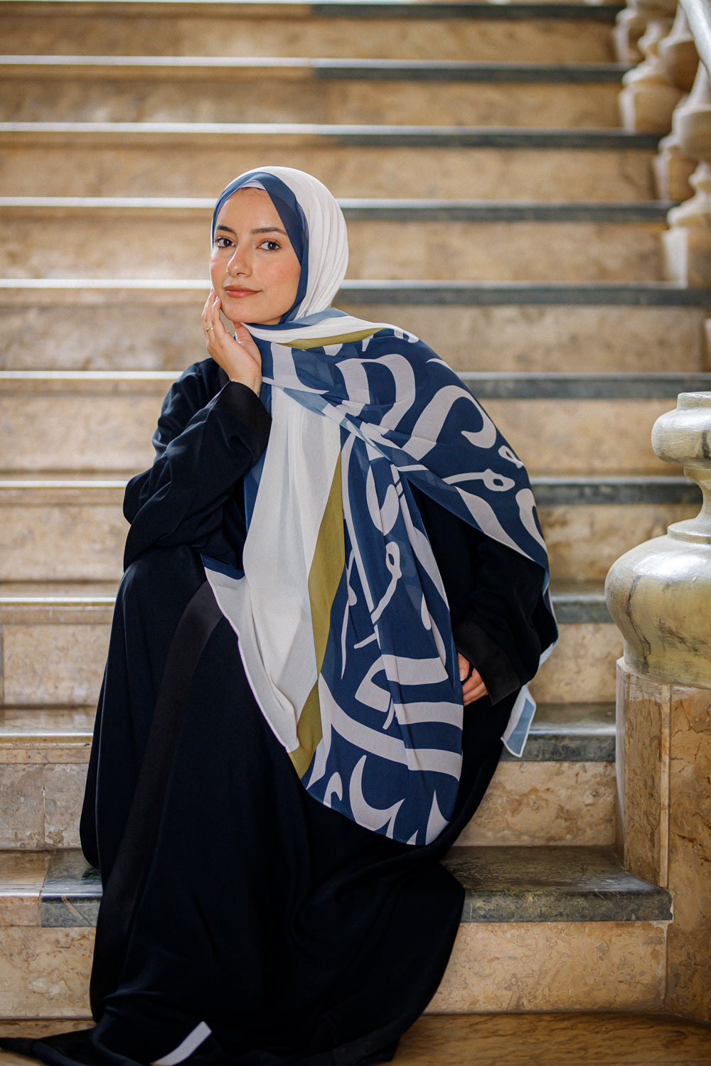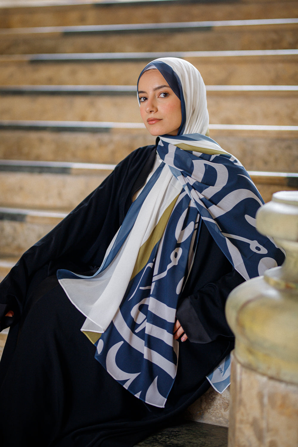 يمزج تصميم "صفاء الليل" بين أناقة الخط العربي التقليدي وخلفية زرقاء جريئة، محاطة بخط ذهبي يضفي لمسة من الفخامة. يُعد هذا التصميم مثاليًا للبيئات الراقية التي تُقدّر تناغم الفن الكلاسيكي مع الجماليات الحديثة.