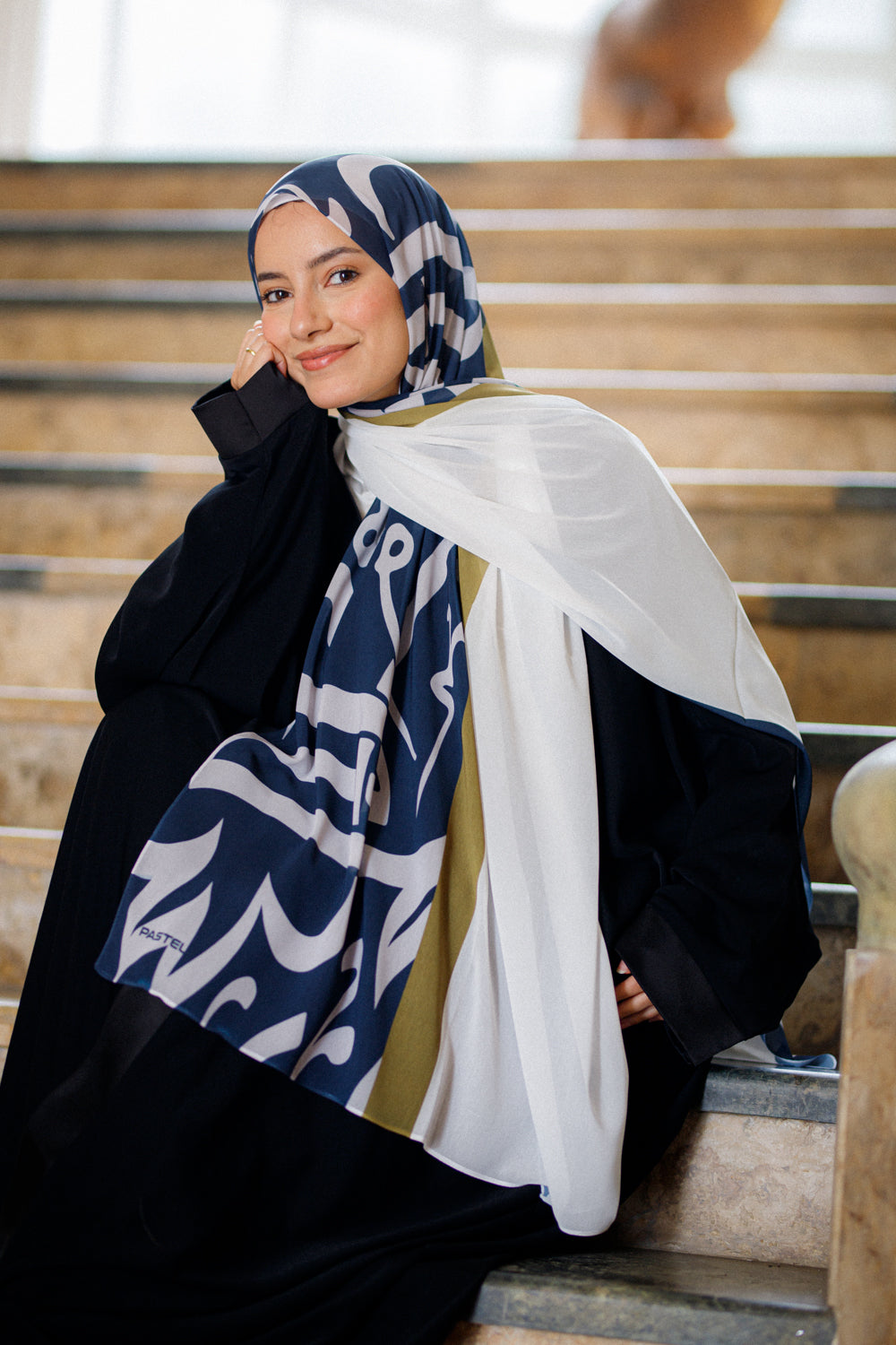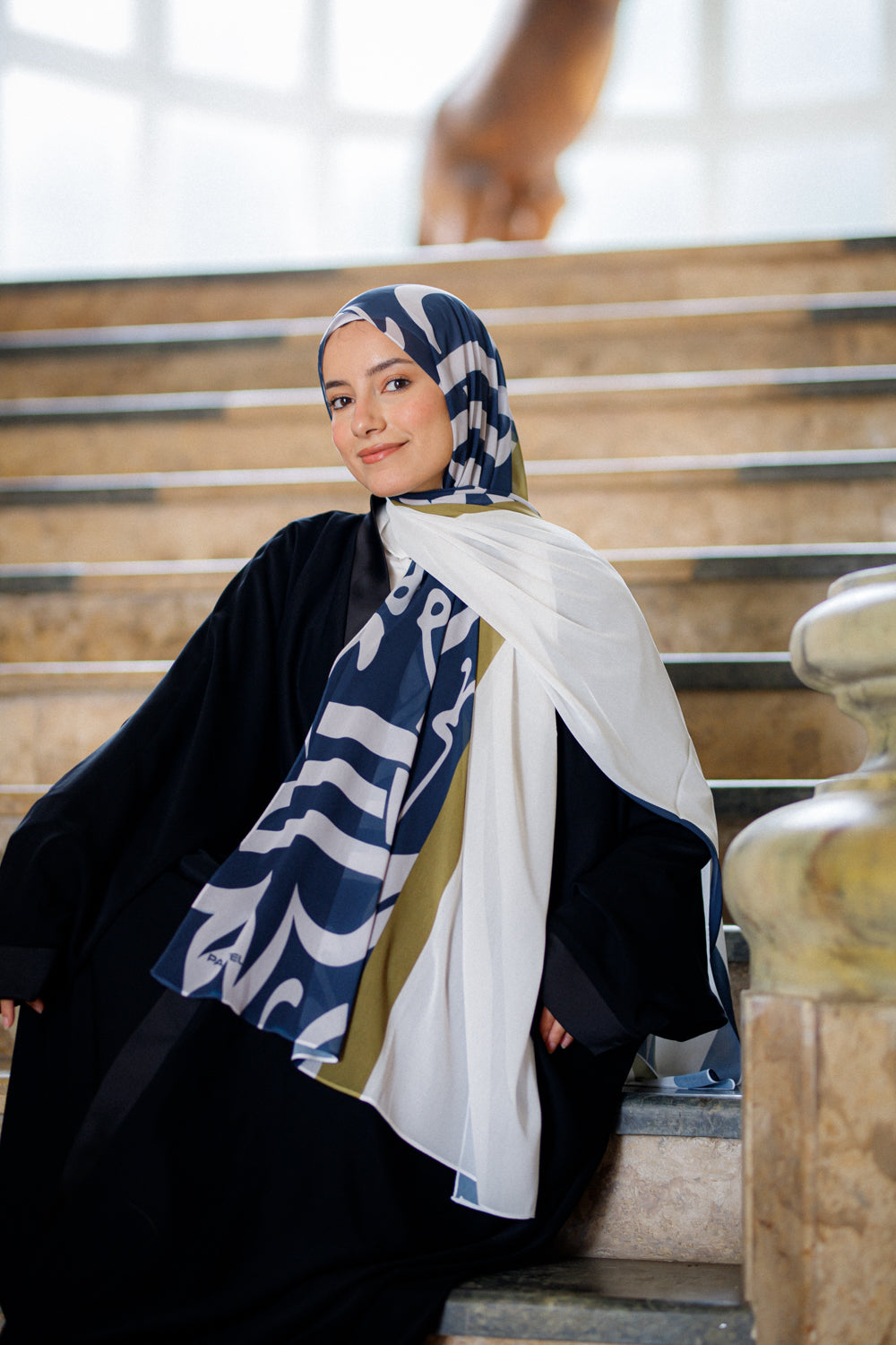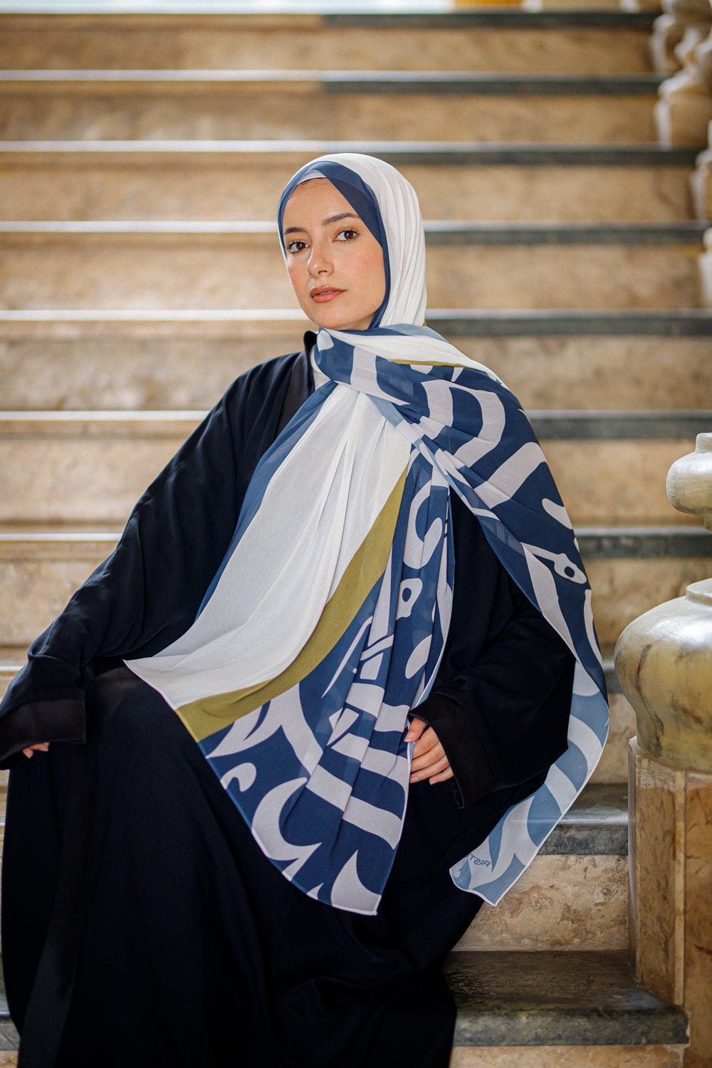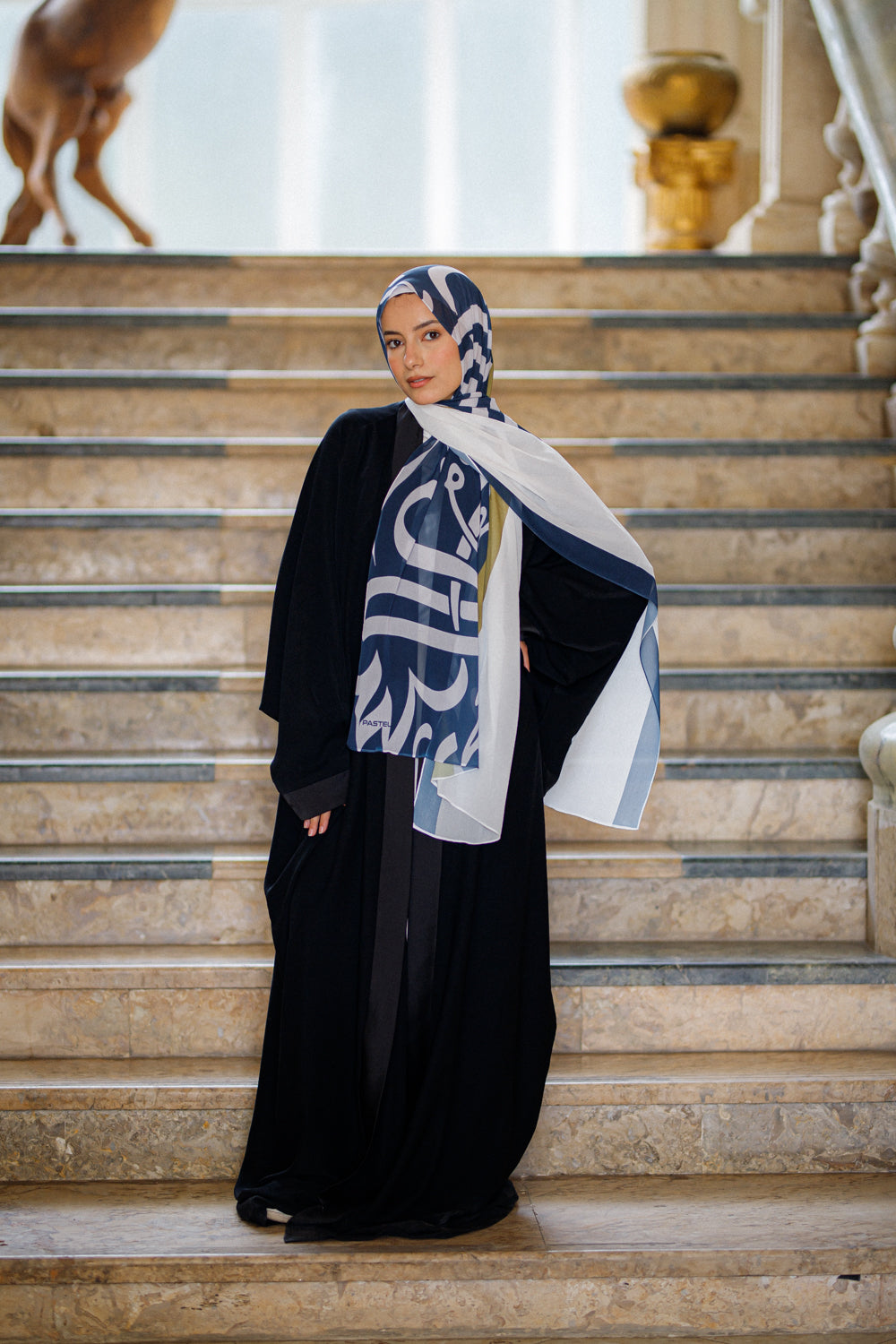 يمزج تصميم "صفاء الليل" بين أناقة الخط العربي التقليدي وخلفية زرقاء جريئة، محاطة بخط ذهبي يضفي لمسة من الفخامة. يُعد هذا التصميم مثاليًا للبيئات الراقية التي تُقدّر تناغم الفن الكلاسيكي مع الجماليات الحديثة.