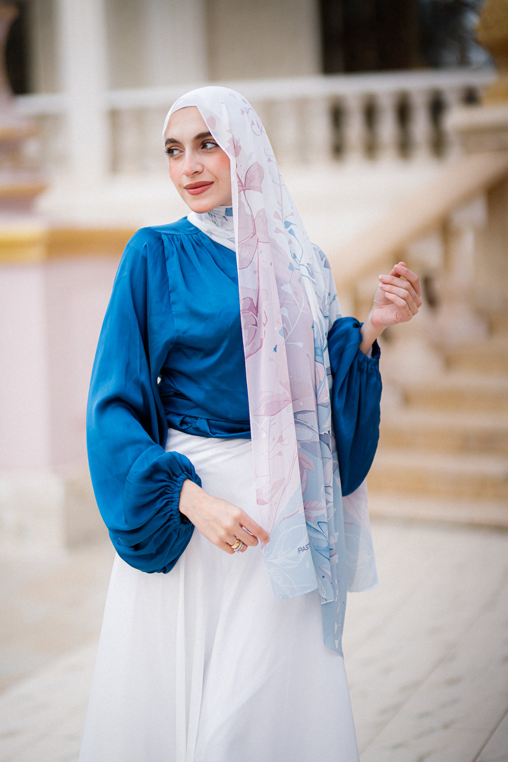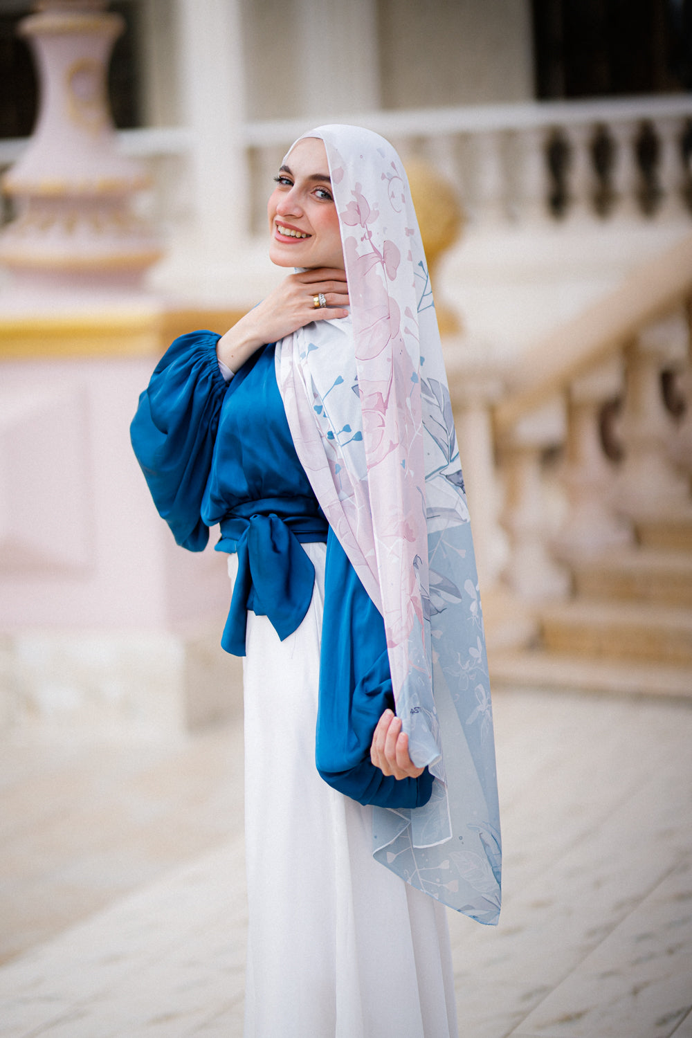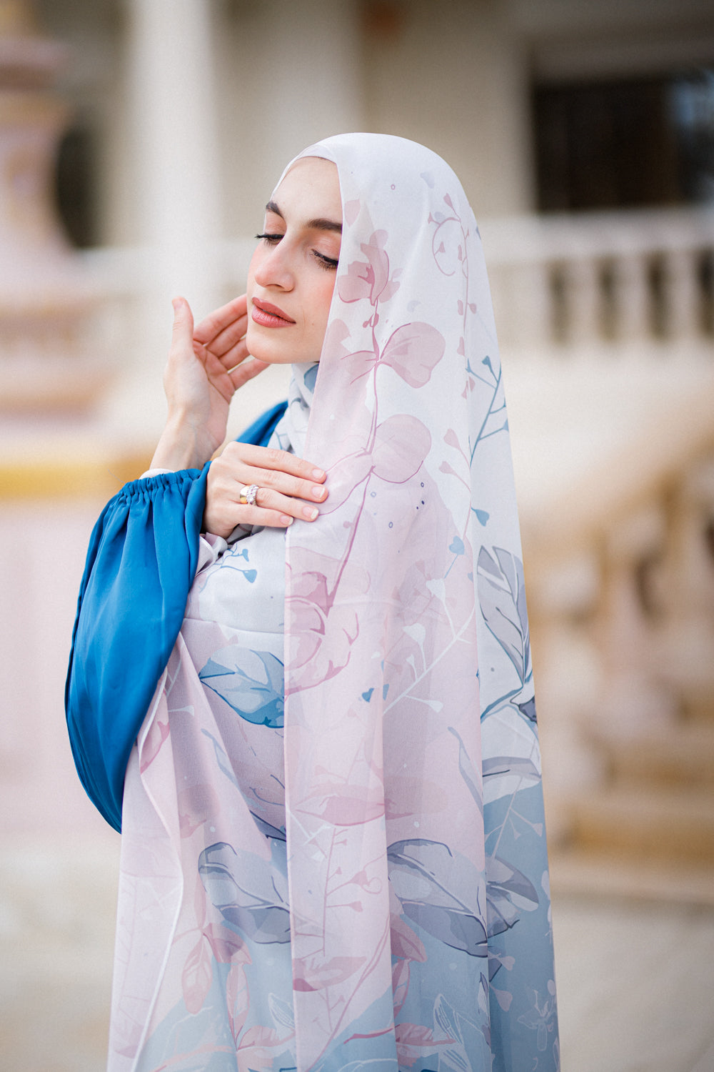 أوراق النعناع الناعمة وأوراق الخدود الوردية تتشابك برشاقة على مركز أبيض ناصع. هذا التصميم الرقيق ينضح بسحر رقيق ورومانسي، مثالي لمن يبحث عن إكسسوار هادئ وراقي.