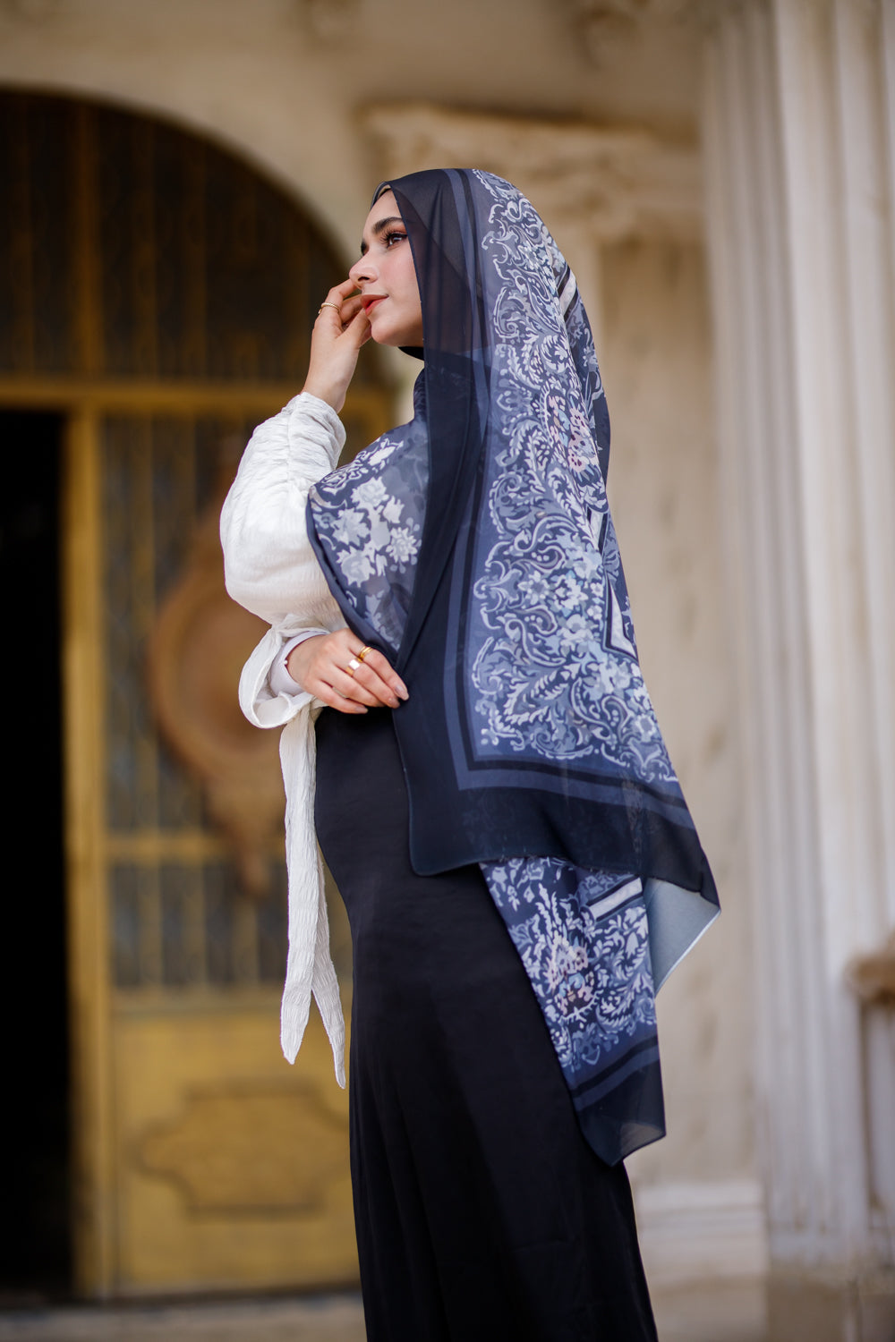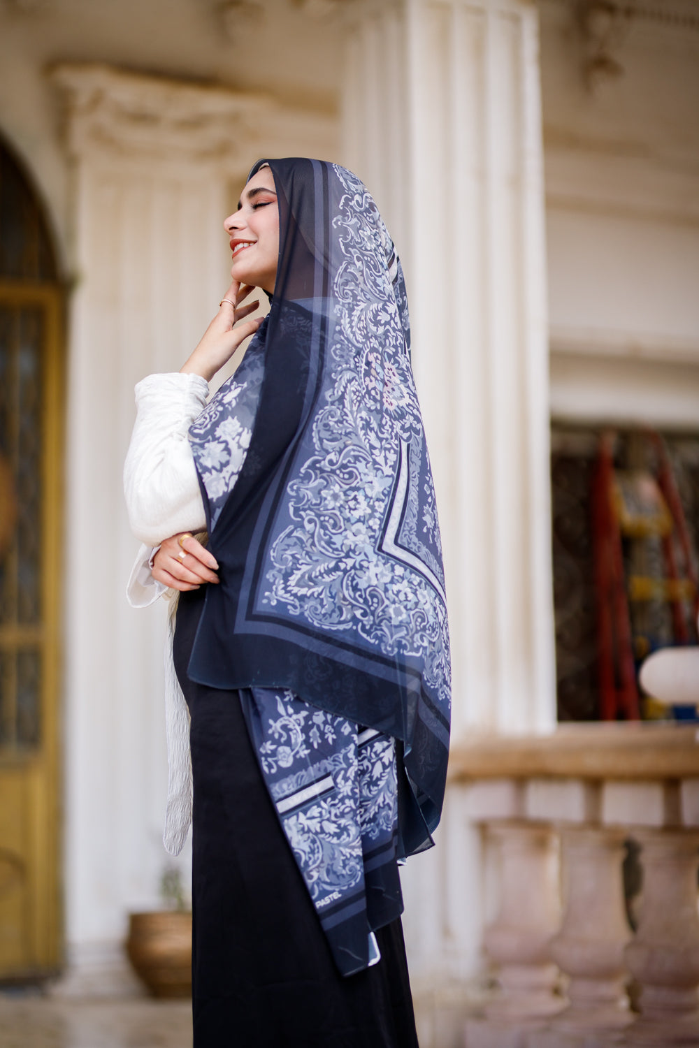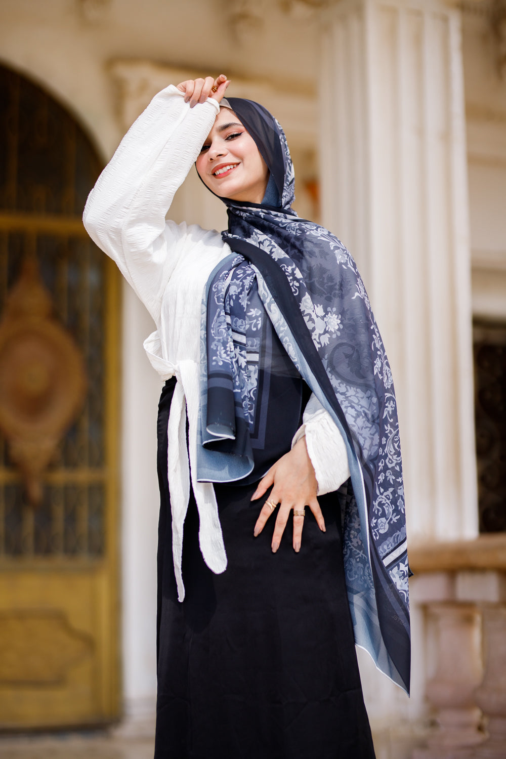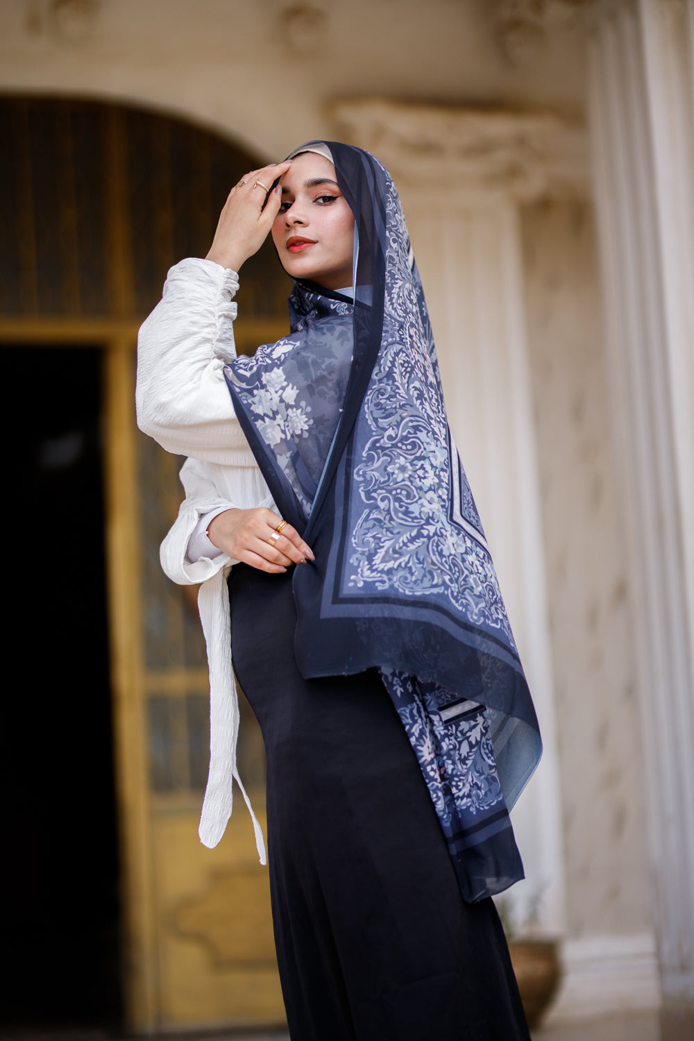 تفاصيل عربية متقنة بدرجات رمادية وفضية دخانية تُذكّر بفخامة القصور الشرقية. بزخارفها الراقية، تُضفي لمسةً فخمةً على الإطلالات الكلاسيكية والمعاصرة.