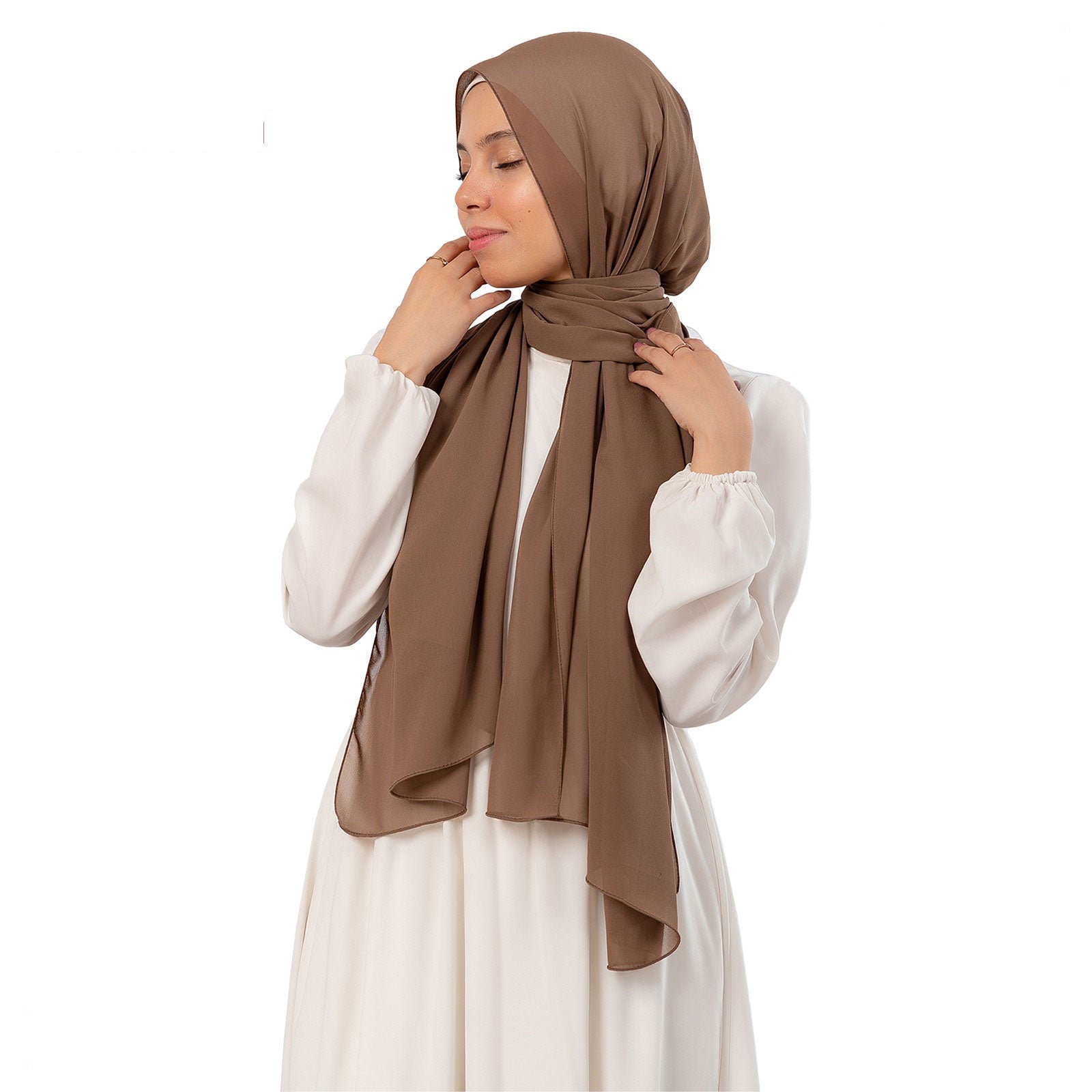 An essential for effortless style, this hijab is made from soft Chiffon Crepe. This fabric provides a light texture, excellent drape, and good opacity, making it both beautiful and practical. The solid color design ensures maximum versatility. Measures 180cm x 75cm